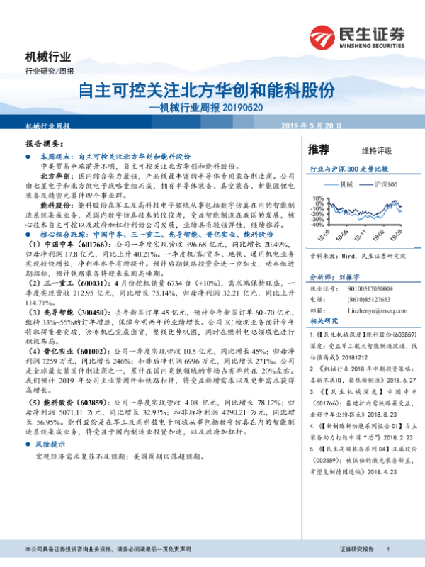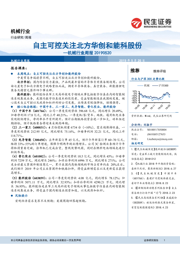 【民生证券】【20190520】机械行业周报:自主可控关注北方华创和能科股份-18页