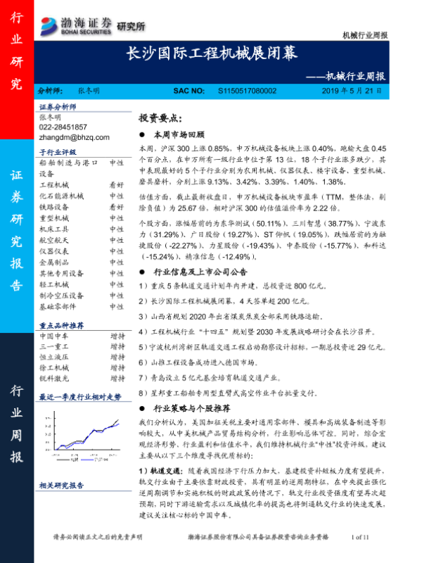 【渤海证券】【20190521】机械行业周报:长沙国际工程机械展闭幕-11页