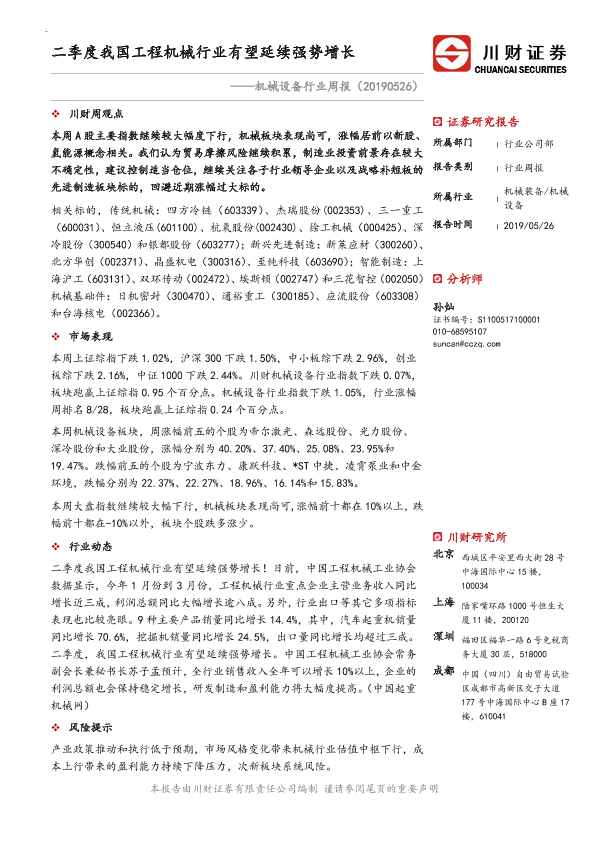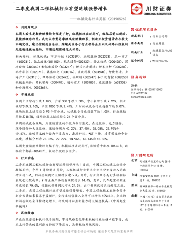 【川财证券】【20190526】20190526-川财证券-机械设备行业周报:二季度我国工程机械行业有望延续强势增长-8页