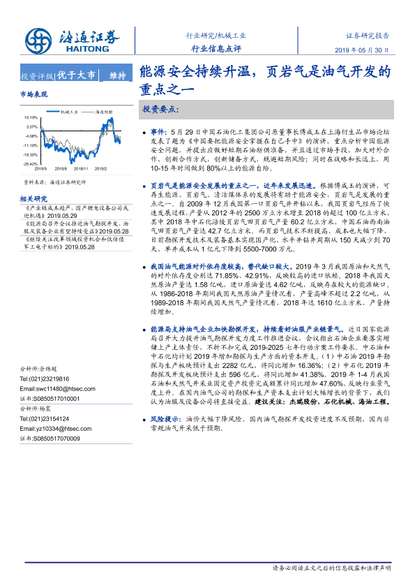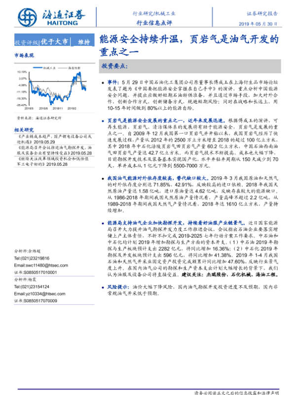 投资评级 机械工业 油气开发 能源安全 页岩气