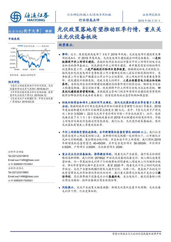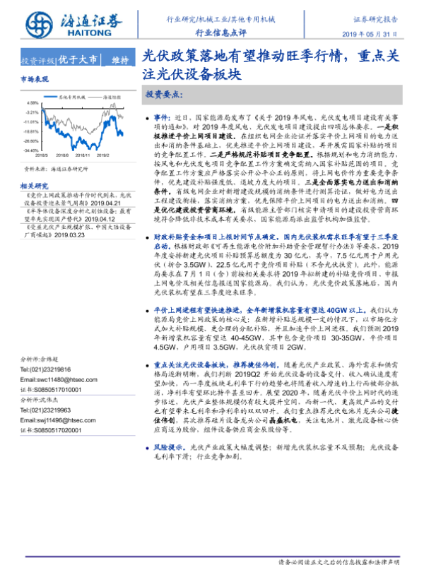 【海通证券】【20190531】20190531-海通证券-机械工业行业信息点评:光伏政策落地有望推动旺季行情,重点关注光伏设备板块-3页
