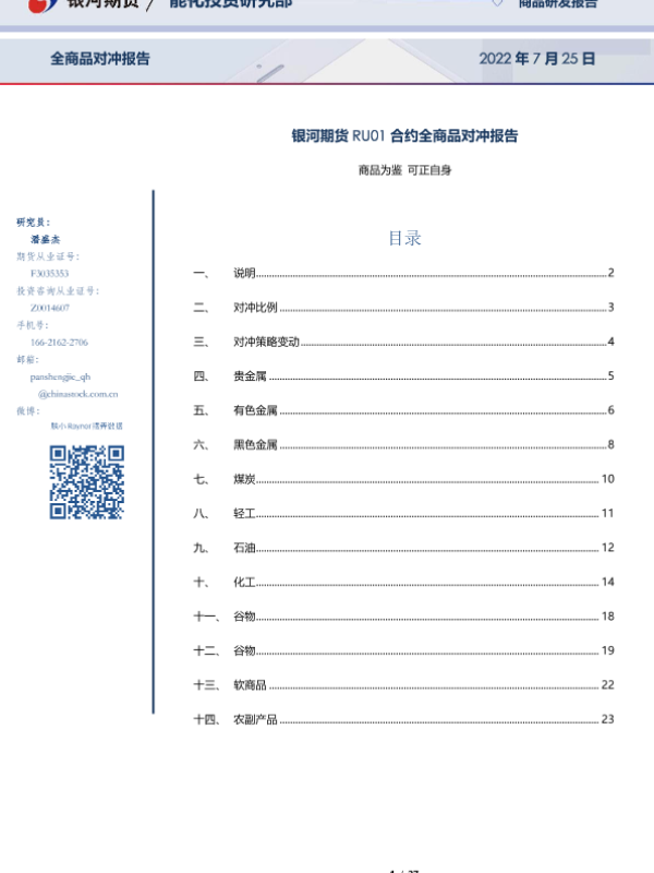 【银河期货】【20220725】RU01合约全商品对冲报告-27页