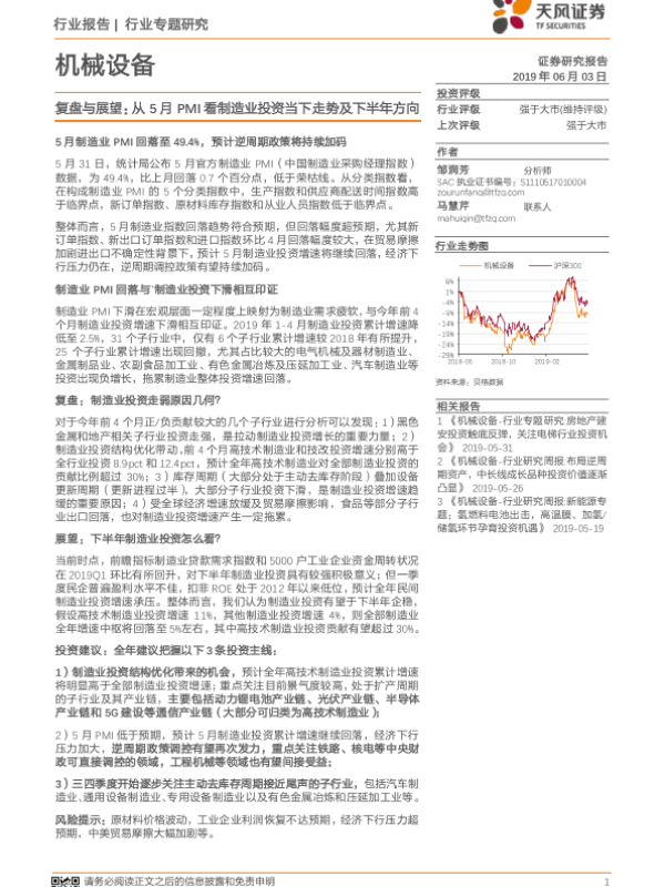 【天风证券】【20190603】机械设备行业专题研究:复盘与展望:从5月PMI看制造业投资当下走势及下半年方向-11页