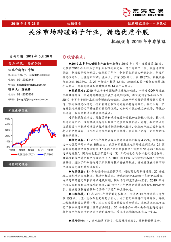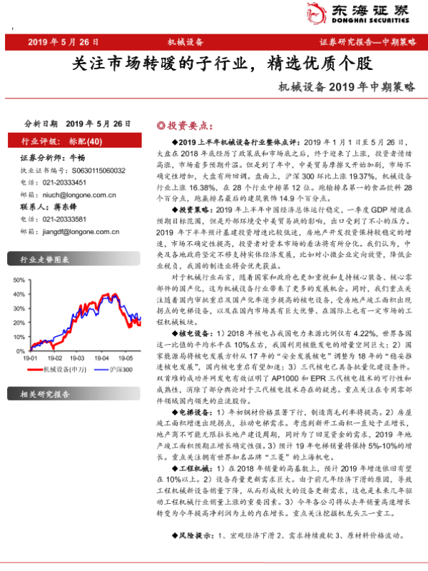 【东海证券】【20190526】机械设备2019年中期策略:关注市场转暖的子行业,精选优质个股-29页