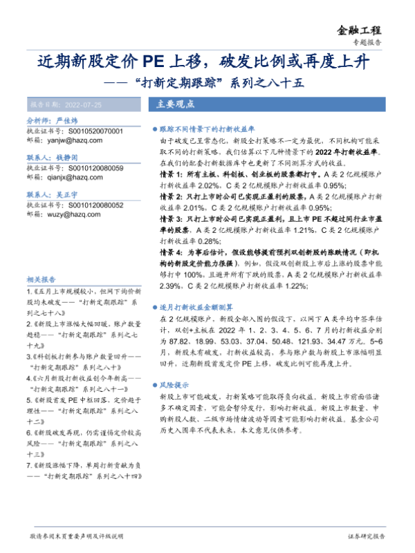 【华安证券】【20220725】“打新定期跟踪”系列之八十五:近期新股定价PE上移,破发比例或再度上升-21页