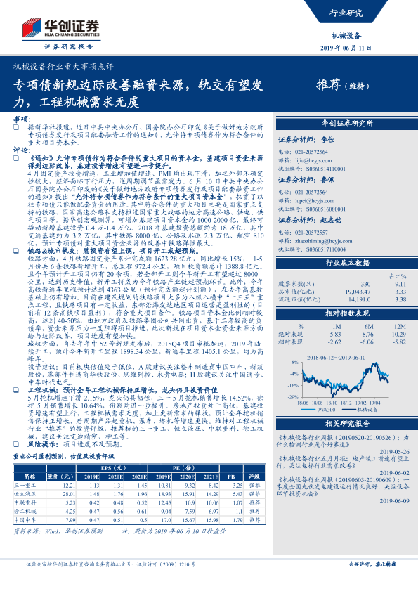 【华创证券】【20190611】机械设备行业重大事项点评:专项债新规边际改善融资来源,轨交有望发力,工程机械需求无虞-4页