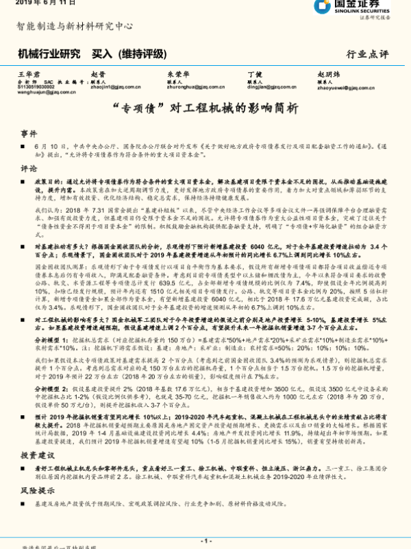 【国金证券】【20190611】“专项债”对工程机械的影响简析-5页