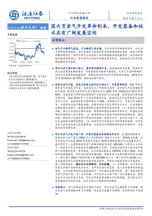 【海通证券】【20190612】20190612-海通证券-机械工业行业深度报告:国内页岩气开发革命到来,开发装备和技术具有广阔发展空间-32页