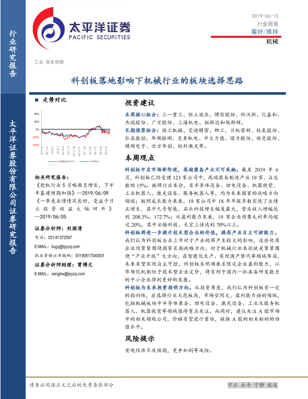 【太平洋证券】【20190615】20190615-太平洋-机械行业周报:科创板落地影响下机械行业的板块选择思路-11页
