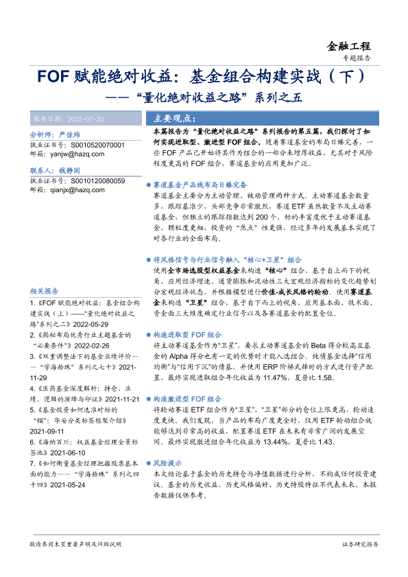 【华安证券】【20220720】“量化绝对收益之路”系列之五:FOF赋能绝对收益,基金组合构建实战(下)-31页