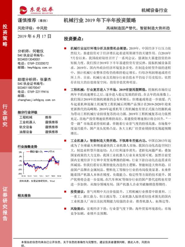 【东莞证券】【20190617】机械行业2019年下半年投资策略:高端制造国产替代,智能制造大势所趋-25页