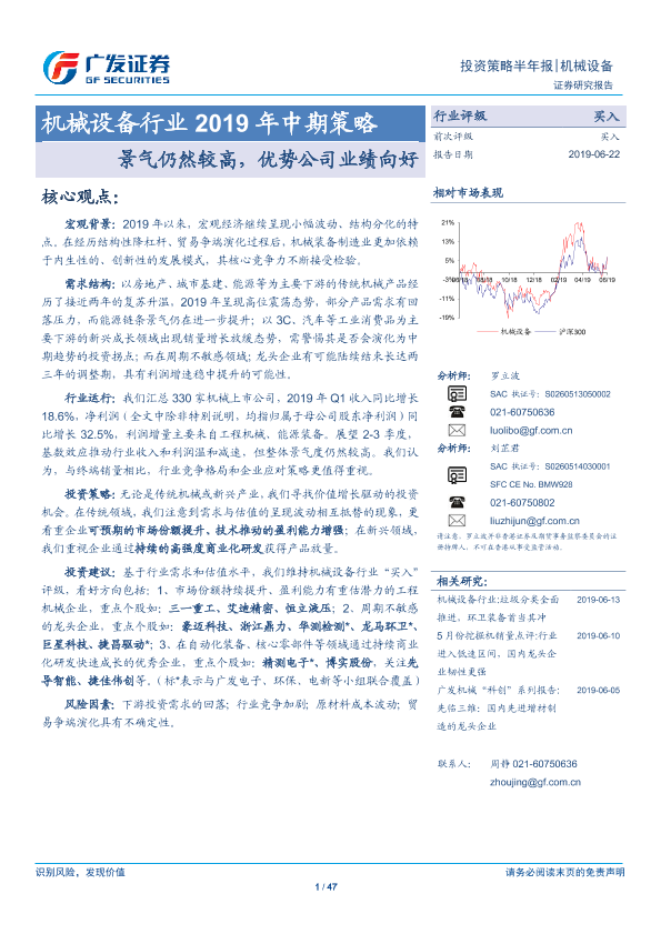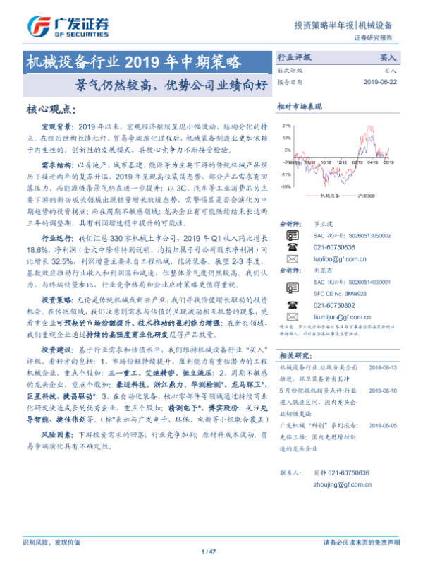 【广发证券】【20190622】机械设备行业2019年中期策略:景气仍然较高,优势公司业绩向好-47页