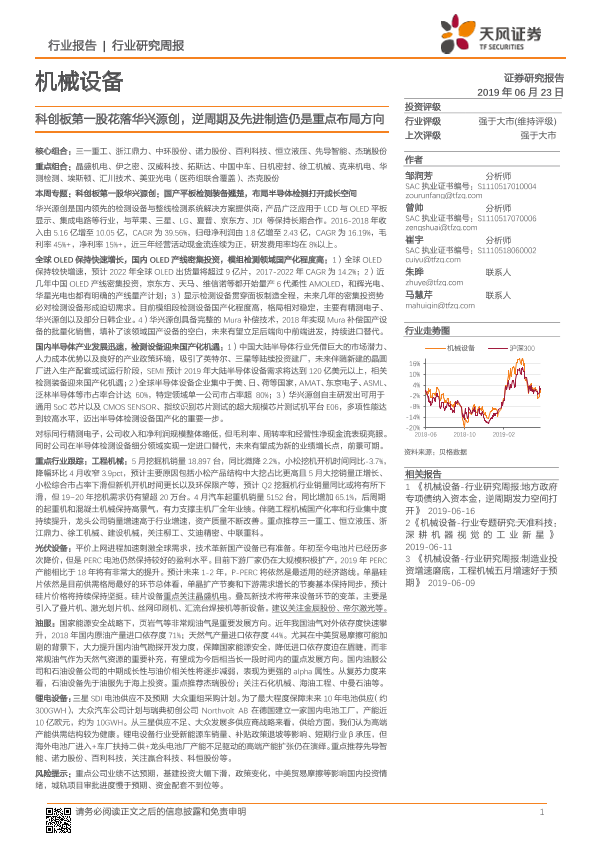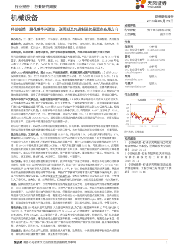 【天风证券】【20190623】20190623-天风证券-机械设备行业研究周报:科创板第一股花落华兴源创,逆周期及先进制造仍是重点布局方向-28页