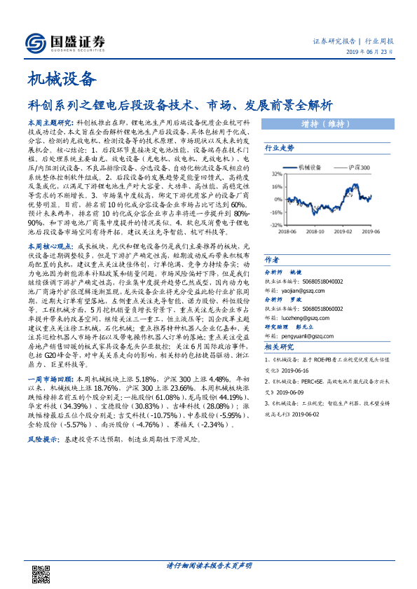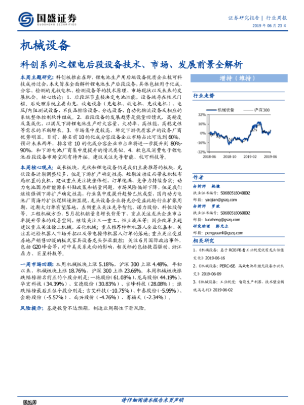 【国盛证券】【20190623】机械设备行业周报:科创系列之锂电后段设备技术、市场、发展前景全解析-21页