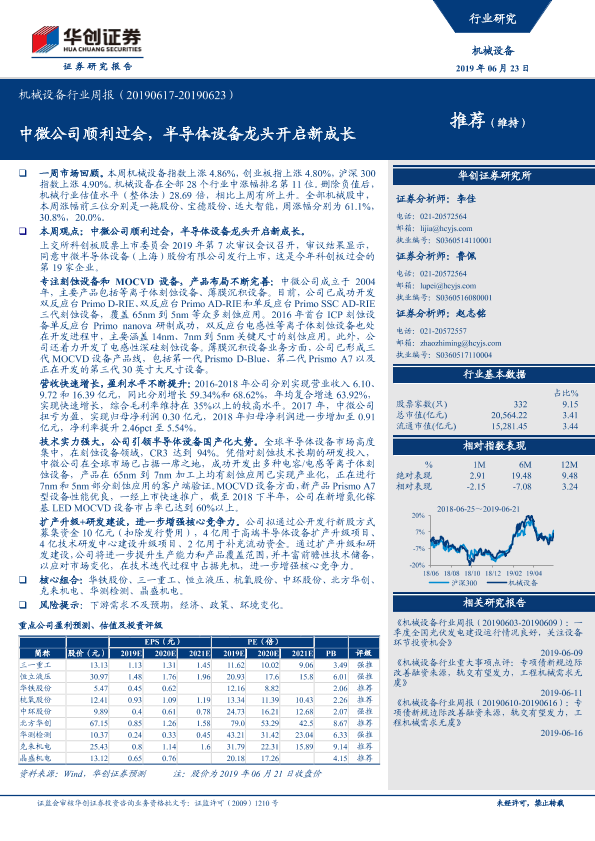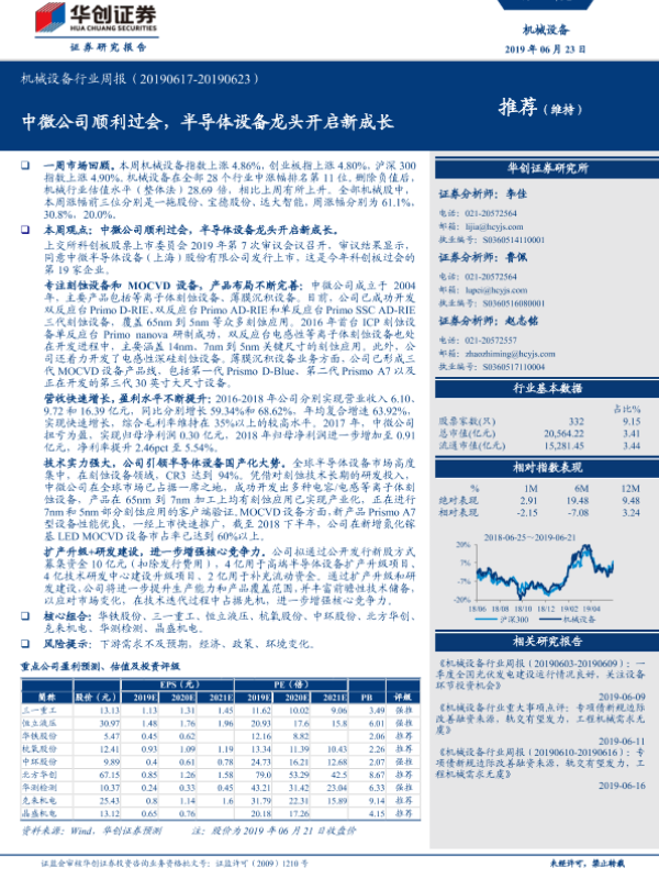 【华创证券】【20190623】机械设备行业周报:中微公司顺利过会,半导体设备龙头开启新成长-20页