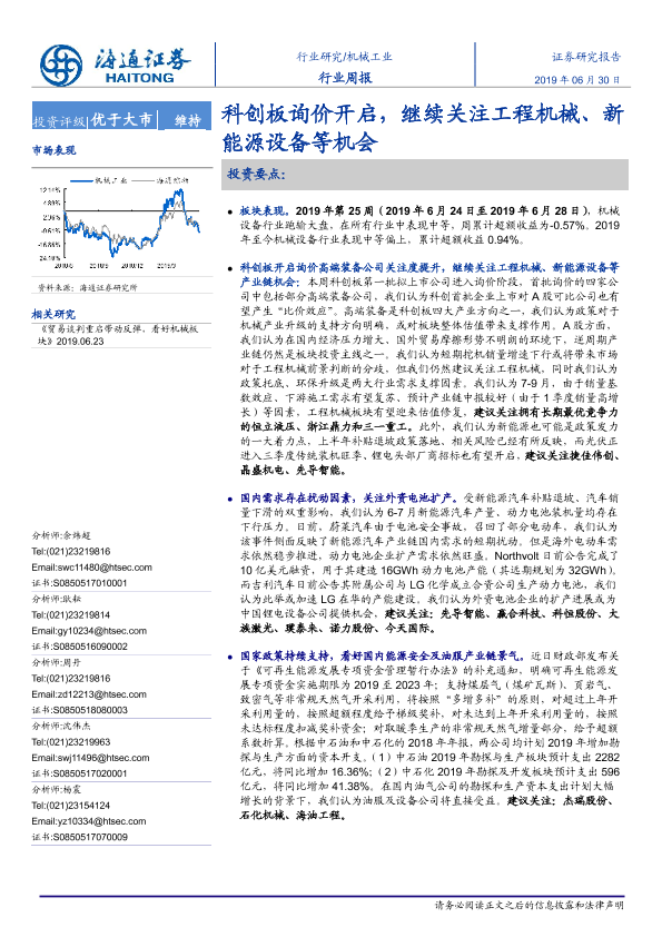 【海通证券】【20190630】20190630-海通证券-机械工业行业周报:科创板询价开启,继续关注工程机械、新能源设备等机会-10页