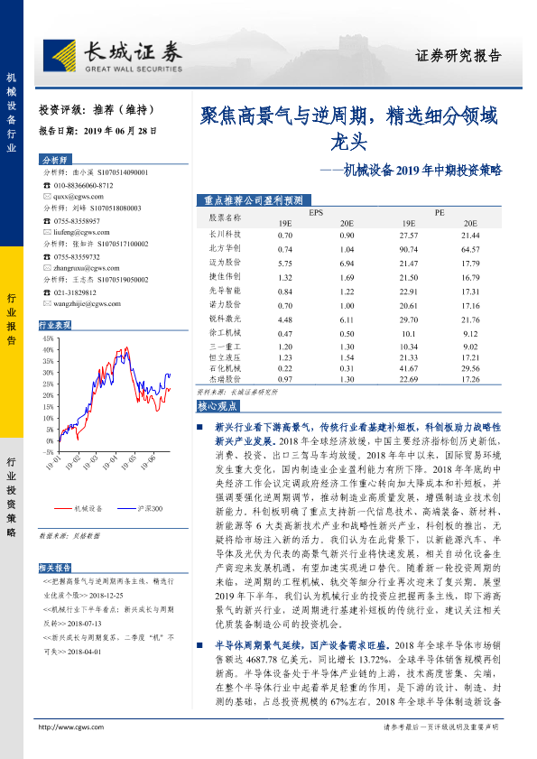 【长城证券】【20190628】机械设备2019年中期投资策略:聚焦高景气与逆周期,精选细分领域龙头-47页