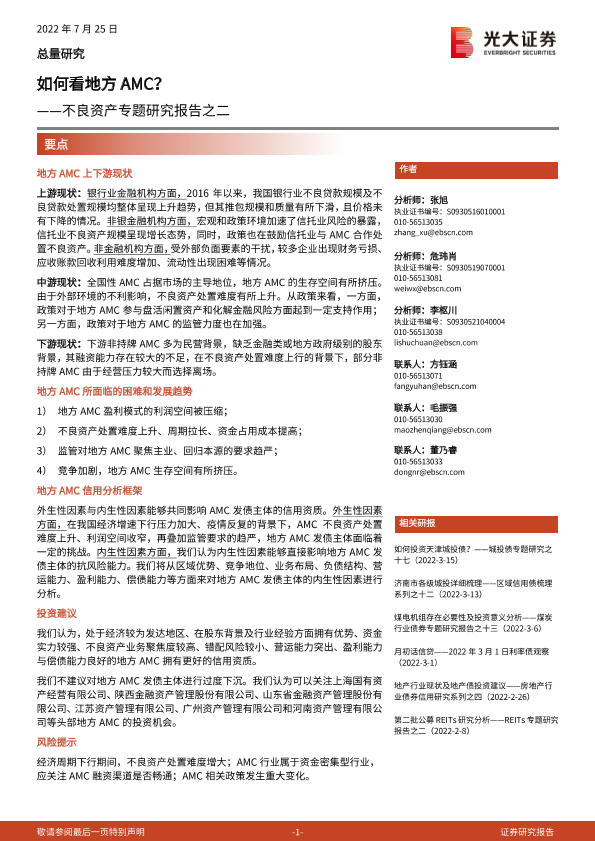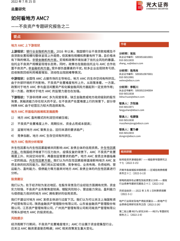 【光大证券】【20220725】不良资产专题研究报告之二:如何看地方AMC?-21页