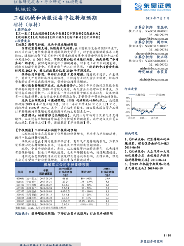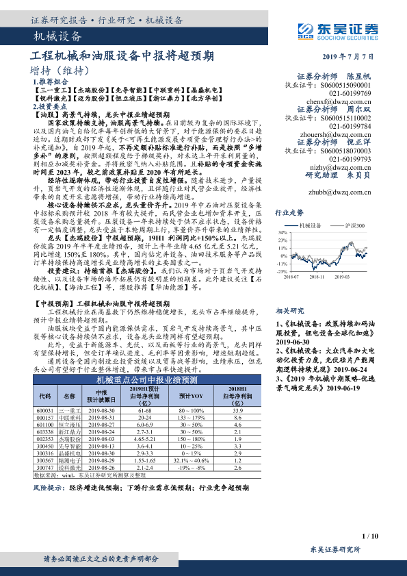 【东吴证券】【20190707】20190707-东吴证券-机械设备行业跟踪周报:工程机械和油服设备中报将超预期-10页