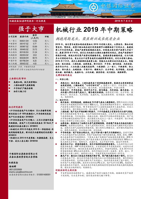 【中银证券】【20190704】机械行业2019年中期策略:拥抱周期龙头,聚焦新兴成长优质企业-47页