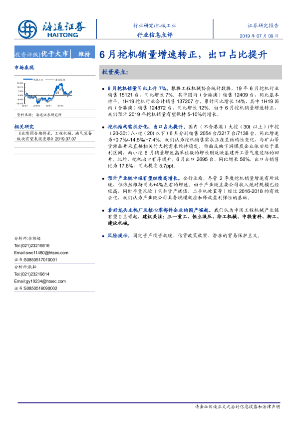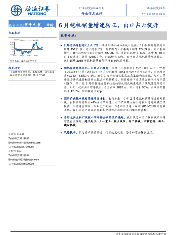 【海通证券】【20190709】20190709-海通证券-机械工业行业信息点评:6月挖机销量增速转正,出口占比提升-4页