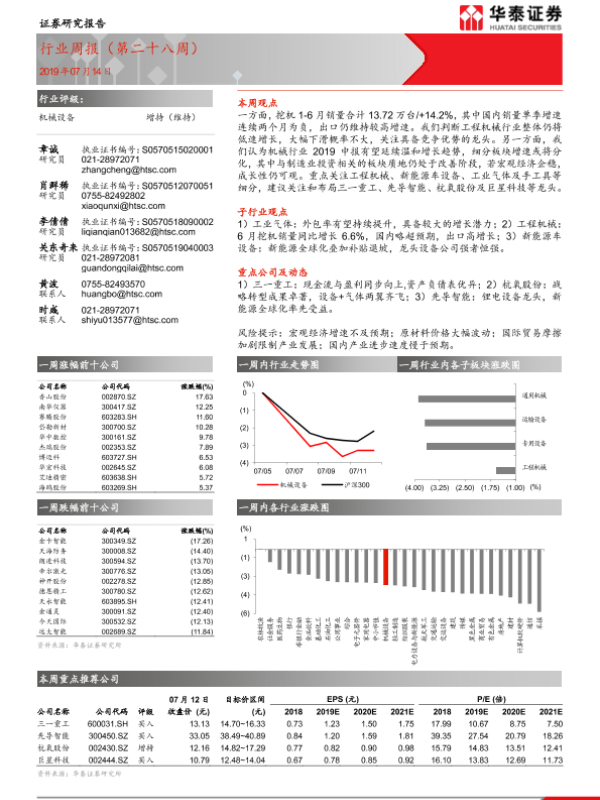 【华泰证券】【20190714】20190714-华泰证券-机械设备行业周报(第二十八周)-9页