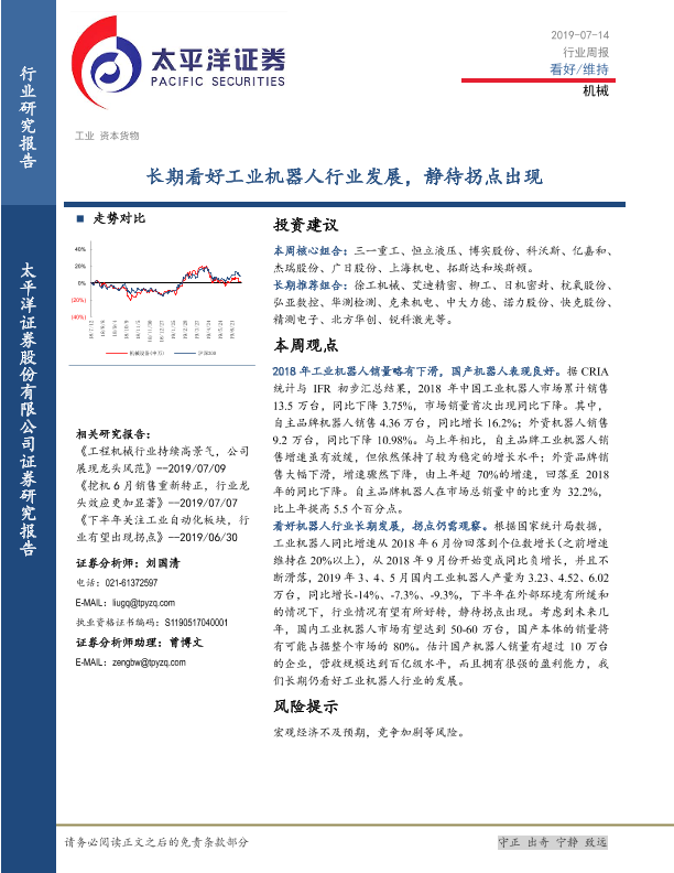 【太平洋证券】【20190714】20190714-太平洋-机械行业周报:长期看好工业机器人行业发展,静待拐点出现-11页