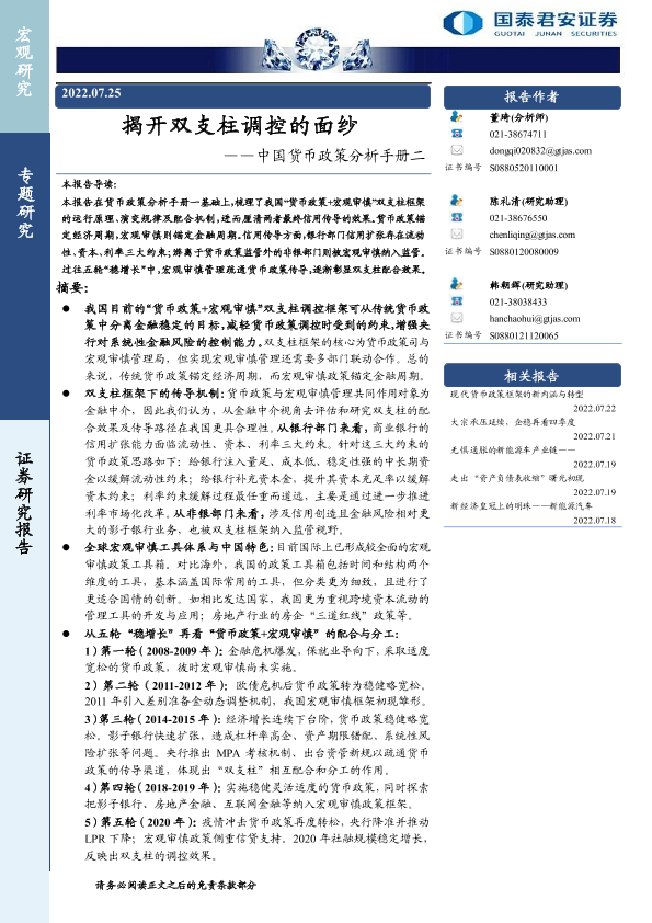 【国泰君安证券】【20220725】中国货币政策分析手册二:揭开双支柱调控的面纱-36页