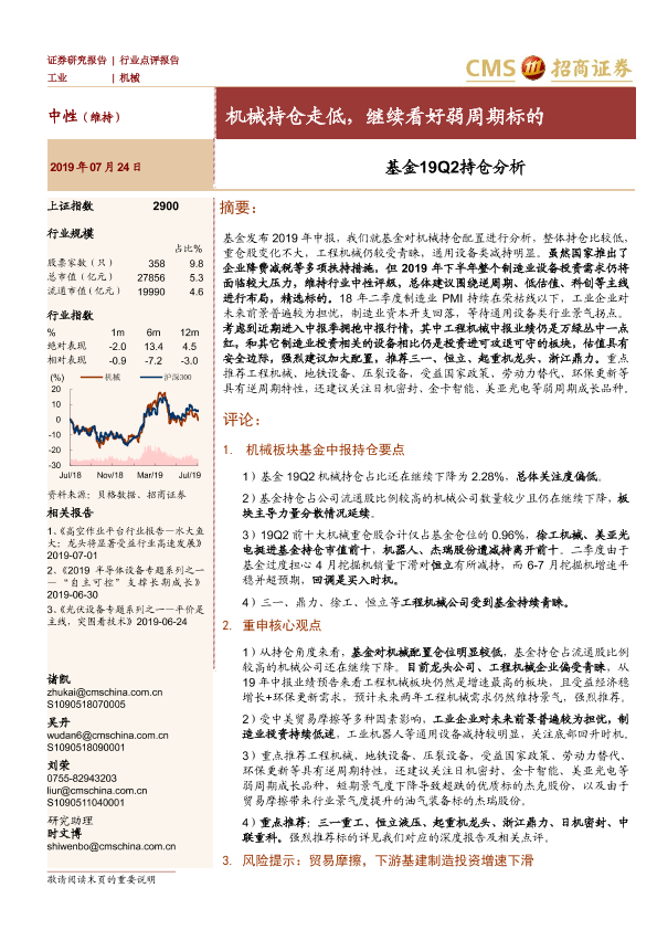 【海通证券】【20190724】基金19Q2持仓分析:机械持仓走低,继续看好弱周期标的-9页