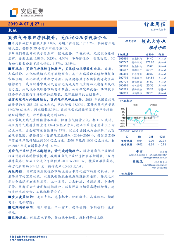 【安信证券】【20190727】20190727-安信证券-机械行业周报:页岩气开采经济性提升,关注核心压裂设备企业-13页