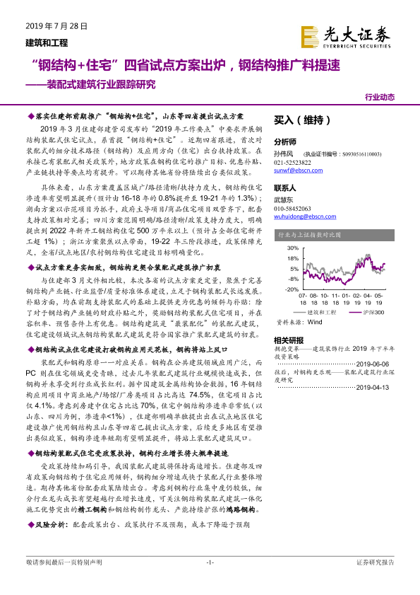【光大证券】【20190728】20190728-光大证券-装配式建筑行业跟踪研究:“钢结构+住宅”四省试点方案出炉,钢结构推广料提速-16页