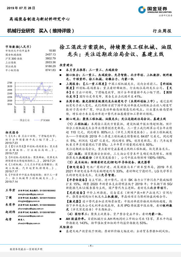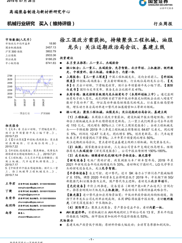 【国金证券】【20190728】20190728-国金证券-机械行业研究:徐工混改方案获批,持续聚焦工程机械、油服龙头;关注近期政治局会议、基建主线-20页