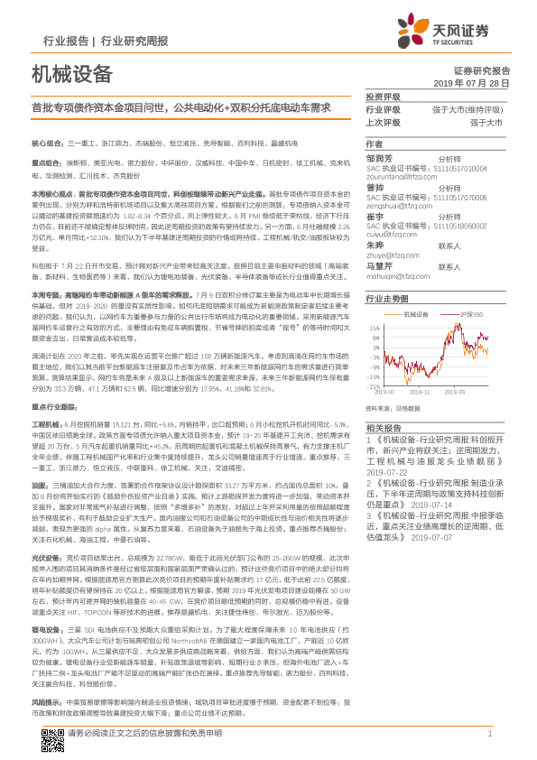 【天风证券】【20190728】20190728-天风证券-机械设备行业研究周报:首批专项债作资本金项目问世,公共电动化+双积分托底电动车需求-19页