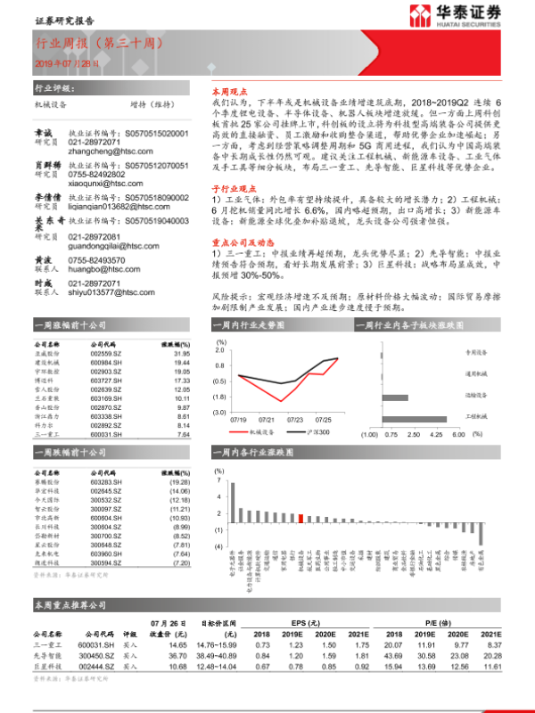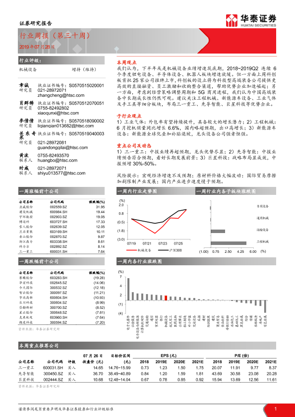 【华泰证券】【20190728】20190728-华泰证券-机械设备行业周报(第三十周)-10页