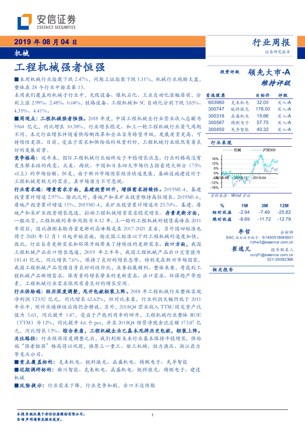 【安信证券】【20190804】机械行业周报:工程机械强者恒强-13页