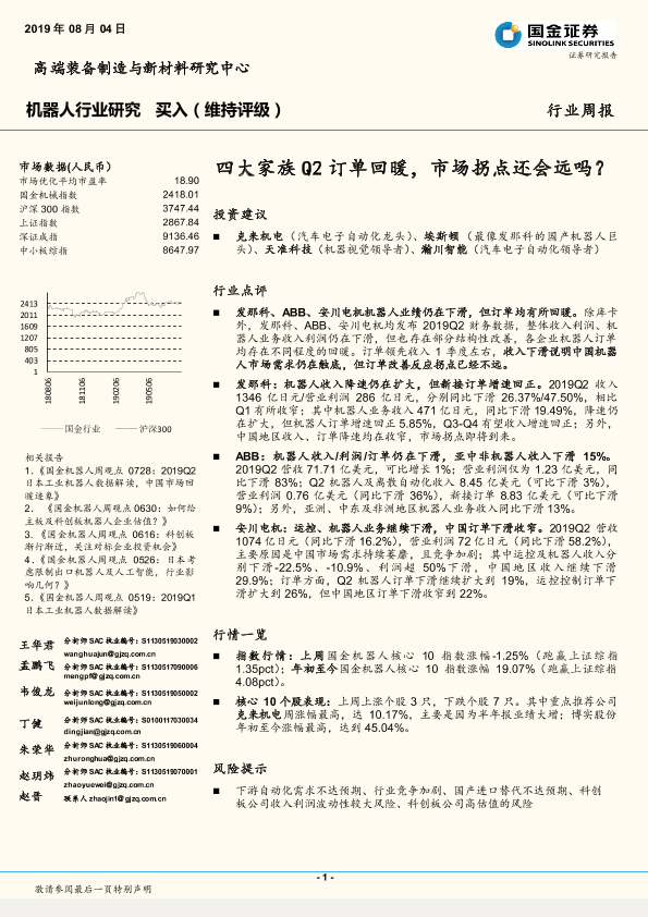 【国金证券】【20190804】20190804-国金证券-机器人行业周报:四大家族Q2订单回暖,市场拐点还会远吗?-15页