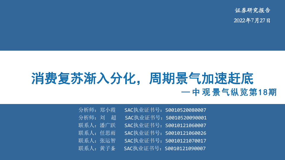 【华安证券】【20220727】中观景气纵览第18期:消费复苏渐入分化,周期景气加速赶底-60页