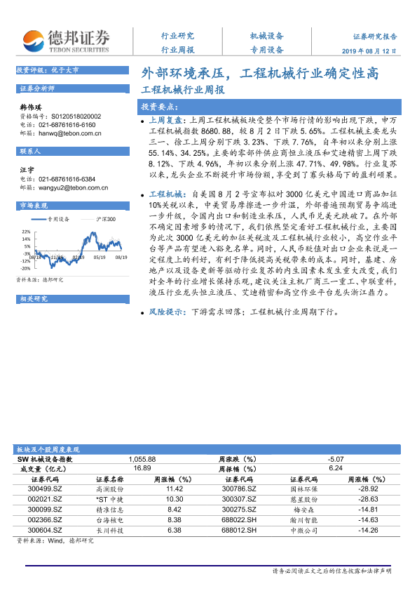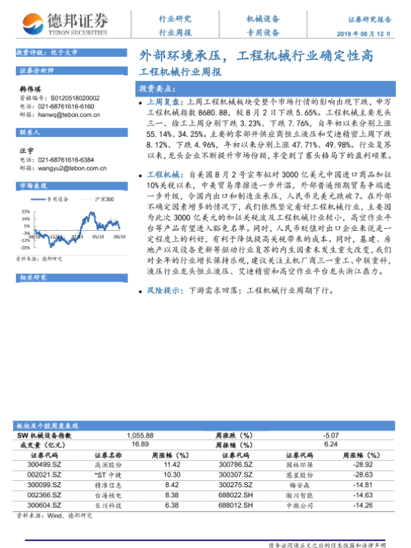 【德邦证券】【20190812】20190812-德邦证券-工程机械行业周报:外部环境承压,工程机械行业确定性高-7页