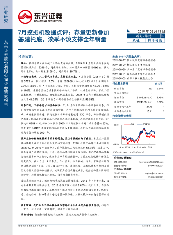 【东兴证券】【20190813】20190813-东兴证券-机械行业7月挖掘机数据点评:存量更新叠加基建托底,淡季不淡支撑全年销量-4页