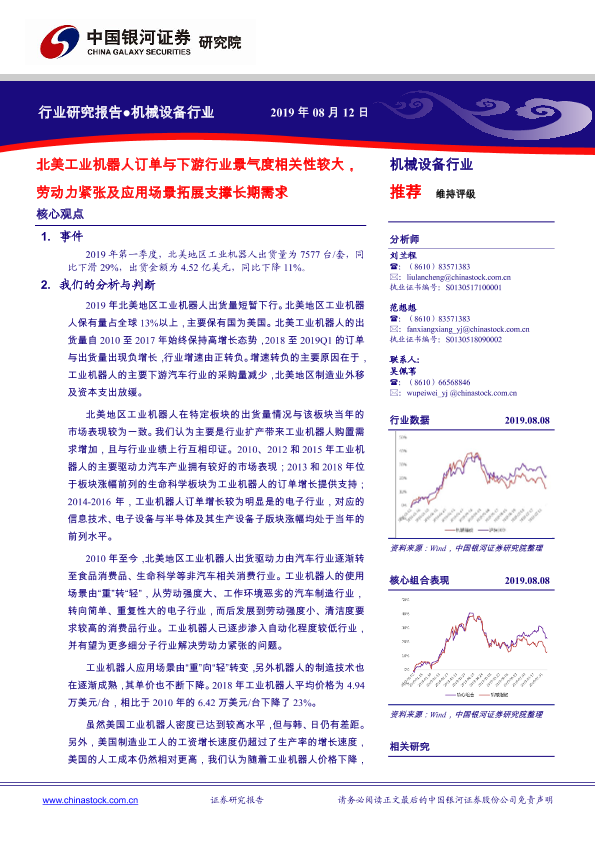 【银河证券】【20190812】机械设备行业:北美工业机器人订单与下游行业景气度相关性较大,劳动力紧张及应用场景拓展支撑长期需求-18页