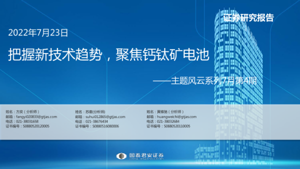 【国泰君安证券】【20220723】主题风云系列7月第4期:把握新技术趋势,聚焦钙钛矿电池-17页