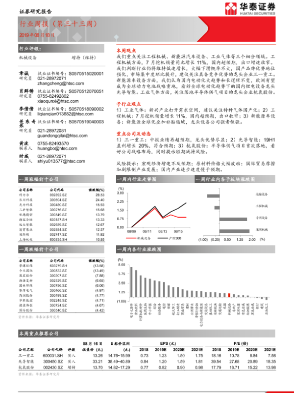 【华泰证券】【20190818】20190818-华泰证券-机械设备行业周报(第三十三周)-11页