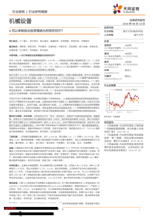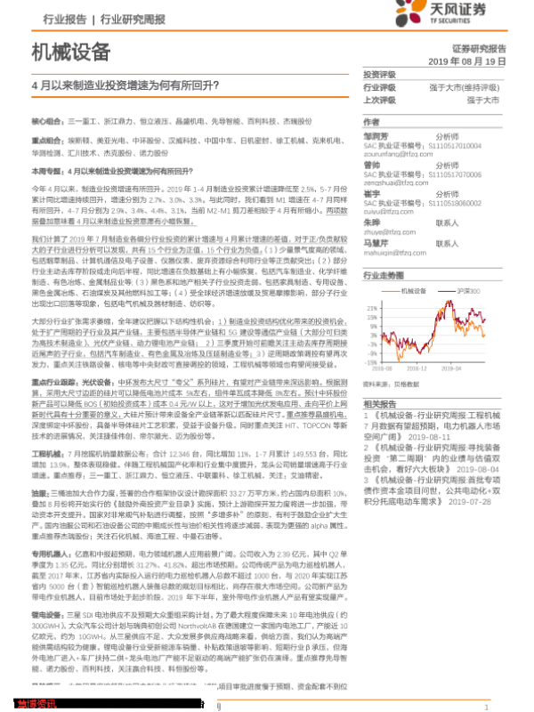 【天风证券】【20190819】20190819-天风证券-机械设备行业研究周报:4月以来制造业投资增速为何有所回升?-20页