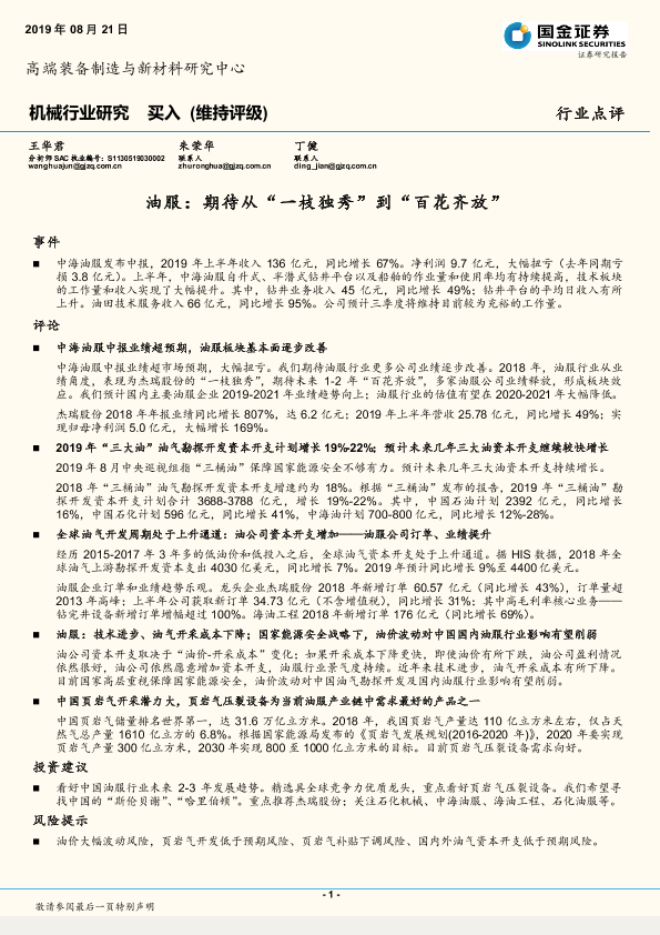 【国金证券】【20190821】机械行业研究:油服:期待从“一枝独秀”到“百花齐放”-4页