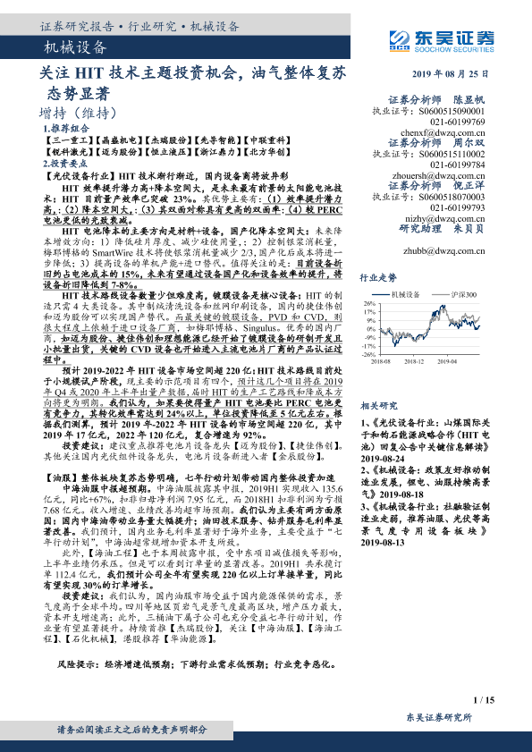 【东吴证券】【20190825】关注HIT技术主题投资机会,油气整体复苏态势显著-15页
