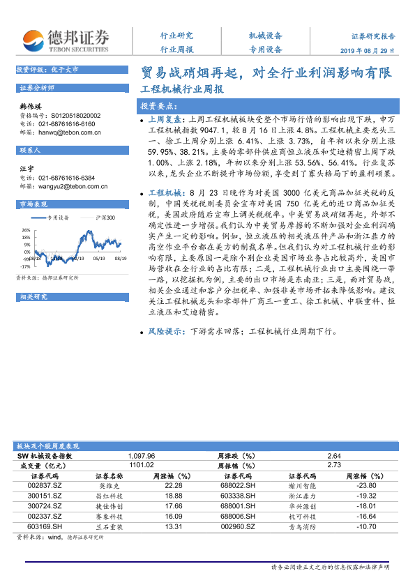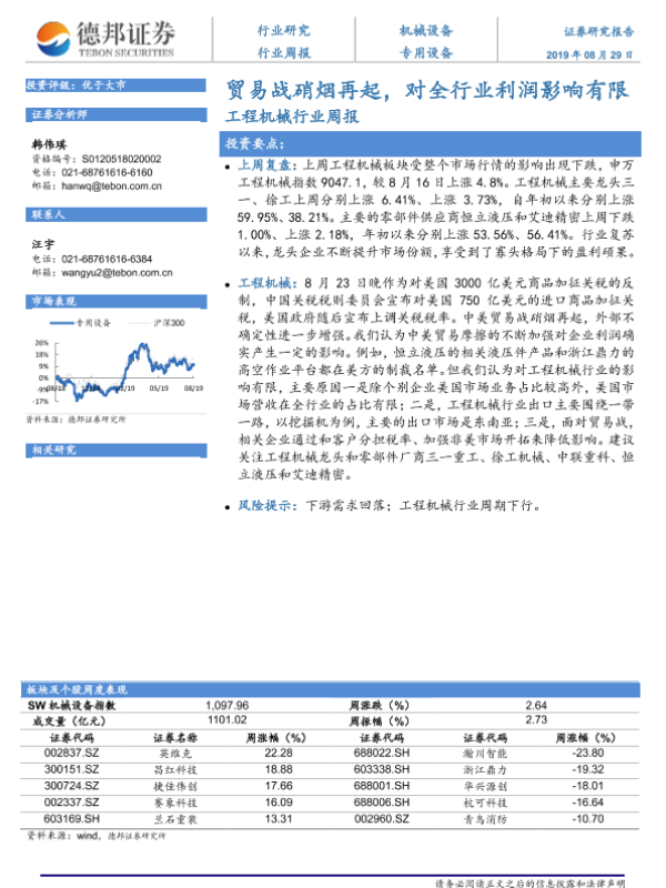 【德邦证券】【20190829】20190829-德邦证券-工程机械行业周报:贸易战硝烟再起,对全行业利润影响有限-7页