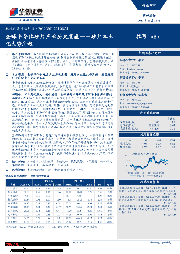 产业发展 半导体硅片 华创证券 本土化 机械设备