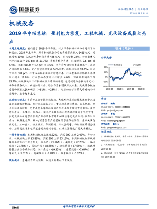 【国盛证券】【20190901】2019年中报总结:盈利能力修复,工程机械、光伏设备成最大亮点-19页