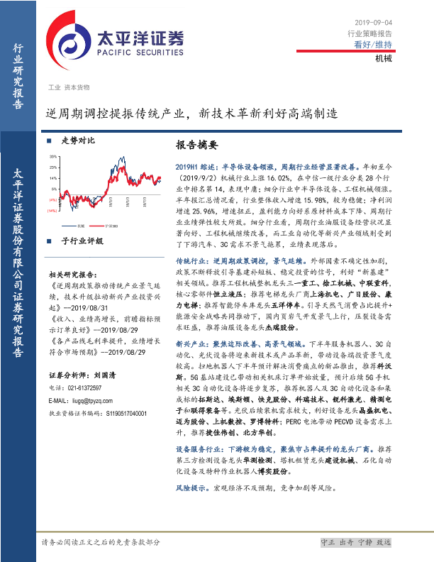 【太平洋证券】【20190904】20190904-太平洋-机械行业策略报告:逆周期调控提振传统产业,新技术革新利好高端制造-37页