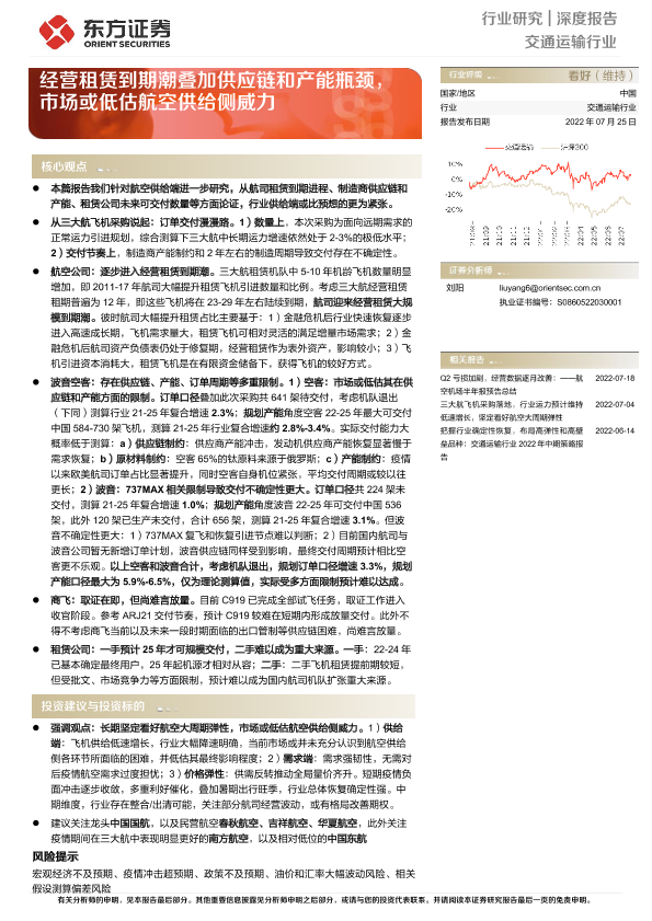 【东方证券】【20220725】交通运输行业:经营租赁到期潮叠加供应链和产能瓶颈,市场或低估航空供给侧威力-23页